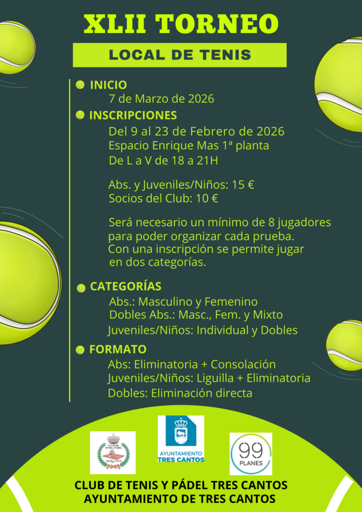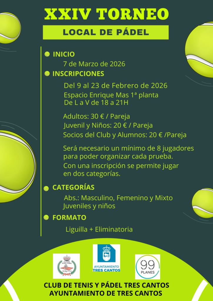 Se abre el plazo de inscripción para una nueva edición del torneo local de tenis y pádel, que comienza el 7 de marzo de 2026.